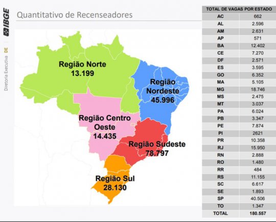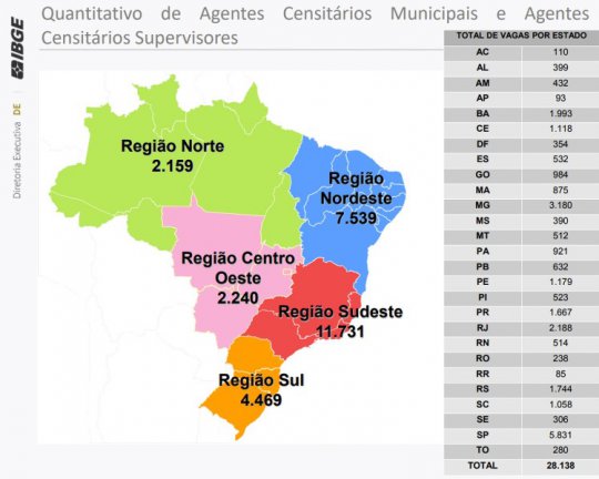 Para as vagas de agentes, a duração do contrato será maior porque serão esses profissionais que irão treinar os recenseadores.