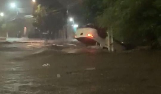 Outro veículo modelo Fiat Toro, que era dirigido pelo Padre Roberto, também foi arrastado pela força das águas na Av. Aderson Ferreira. O padre estava no veículo e conseguiu sair do carro. O Padre conseguiu sair ileso.