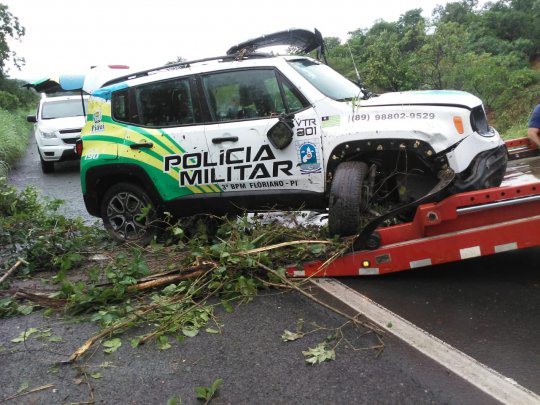 Na tarde desta sexta-feira (13), uma viatura do 3º Batalhão da Polícia Militar da cidade de Floriano capotou com dois policiais na região da localidade Boqueirão.