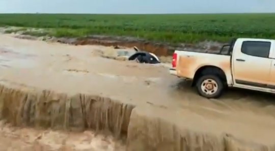 Uma forte chuva registrada no município de Currais, região Sul do Piauí, na tarde dessa terça-feira (24), rompeu uma estrada, onde se formou uma cratera que engoliu um veículo modelo Hilux, no trecho que dá acesso ao povoado Laranjeira, zona rural do município.