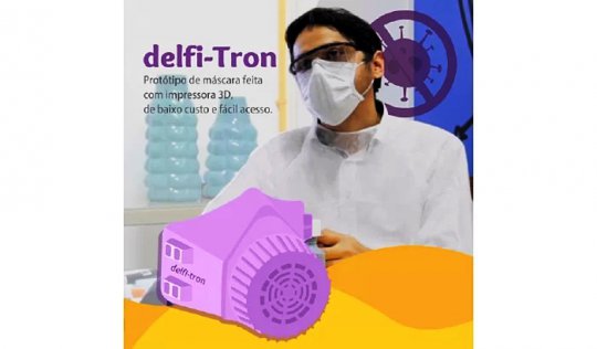Máscara Delfi-TRON - A TRON também está com uma vaquinha online para arrecadar doações e desenvolver um protótipo de máscara de proteção respiratória, que pode ser produzida em impressoras 3D domésticas, de baixo custo e fácil acesso, para uso inicial por profissionais de saúde.