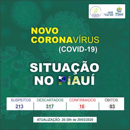 A nota da Sesapi, também divulgada na noite deste domingo, aponta 16 casos confirmados; 213 suspeitos e 317 casos descartados em todo o Piauí.