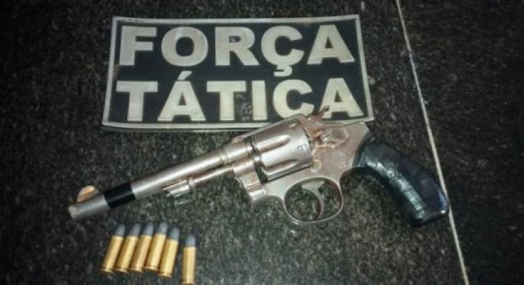 Após tentar fugir da abordagem e esconder a arma em um matagal, o acusado entrou em uma residência, mas a arma foi encontrada e ele foi preso e conduzido para a Delegacia a fim de ser autuado em flagrante por porte ilegal de arma de fogo.