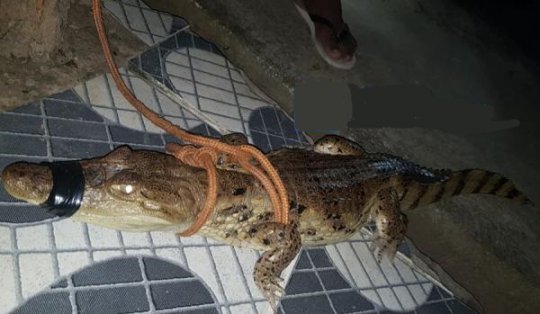 Moradores de uma residência em Piripiri foram surpreendidos com a presente de um filhote de jacaré no quintal, na noite desta quinta-feira (23).