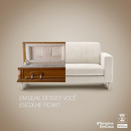 Para evitar o avanço da epidemia do novo coronavírus na cidade, a prefeitura de Teresina (PI) tem endossado políticas de distanciamento social e usou a imagem de um caixão e de um sofá para convencer a população a ficar em casa.