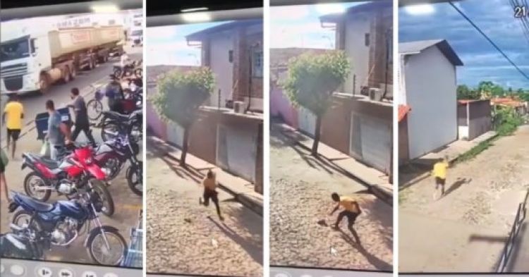 Na saída do estabelecimento, dois funcionários chegam a falar e gesticular com o homem, que empreende fuga. Em outro ângulo, as imagens mostram o ladrão deixando o pedaço de carne cair, mas pega novamente e continua a correr.