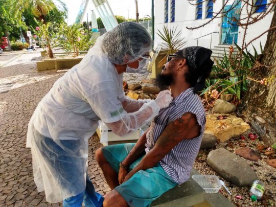 Desde o início da pandemia, o Consultório na Rua já atendeu a 455 moradores de rua e passou a realizar busca ativa dos sintomáticos em todas as zonas da cidade. “Também realizamos ações educativas para esclarecer sobre o coronavírus, espalhamos recipientes com sabão líquido em praças e distribuímos kits de higiene para esse público”, explica a assistente social Melissa Lima.