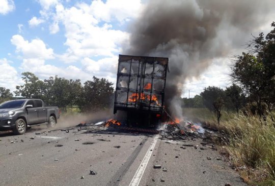 Uma carreta ficou totalmente destruída após sofrer uma pane elétrica e pegar fogo no final da manhã de ontem, na altura do Km 116, da BR-316, no município de Passagem Franca do Piauí. O veículo e a carga foram totalmente consumidos pelo fogo.