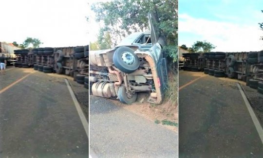 Uma carreta modelo Volvo carregada de soja tombou na BR 316, próximo a comunidade Baixa Grande município de Monsenhor Gil. O veículo estava sendo conduzido por um homem de 32 anos, que sofreu lesões graves. Ele foi socorrido logo após o acidente, que ocorreu no domingo (21).