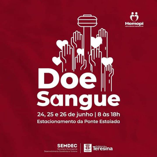 O Hemopi iniciou hoje uma campanha pela doação de sangue, mais uma das ações do "Junho Vermelho", mês da conscientização da importância de se doar sangue. O local escolhido para a promoção da campanha, foi o estacionamento do Complexo Turistico Ponte Estaiada, que está recebendo uma unidade móvel de coleta de sangue para facilitar o acesso de doadores. A ação teve início nesta quarta-feira (24) e terminará na sexta-feira (26), com atendimento de 8h às 16h30.