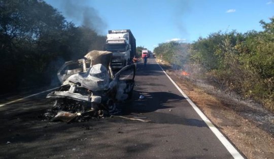 Segundo a Polícia Rodoviária Federal, o condutor do veículo de passeio invadiu a faixa contrária, colidindo frontalmente com o veículo de carga ao tentar retornar bruscamente após saída da pista de rolamento. Após a colisão, o veículo de passeio incendiou-se.