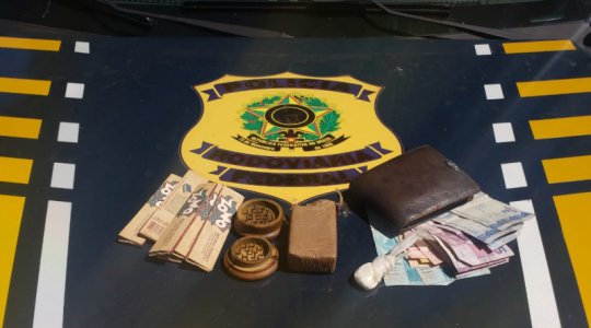 Policiais Rodoviários Federais realizaram a apreensão de aproximadamente 80g de substância análoga a maconha e 10g de substância análoga a cocaína.
