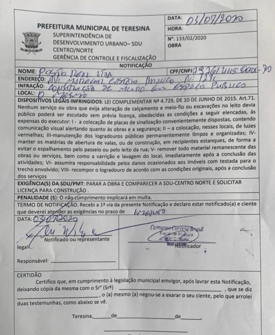 A ação, segundo a notificado entregue ao proprietário do posto ocorreu em virtude de o muro ter sido construído sem prévia autorização da prefeitura.