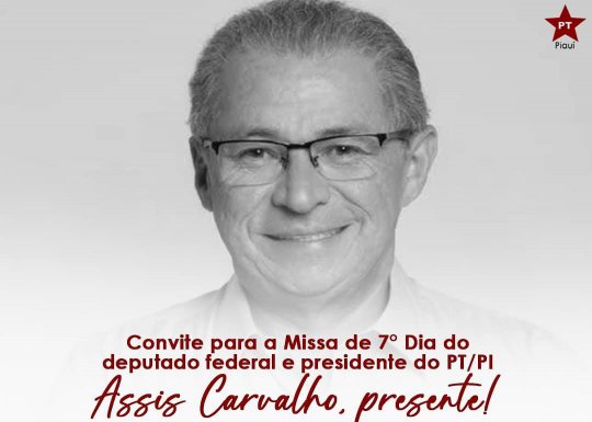 Uma celebração de esperança e fé. Neste sábado (11), a partir das 19h acontecerá a Missa de 7° dia do falecido deputado federal Assis Carvalho. "Mesmo distanciados pela pandemia, podemos estar juntos na mesma cerimônia, participando pelas redes sociais e pela TV desse momento sagrado", diz o aviso publicado nas redes sociais do petista.