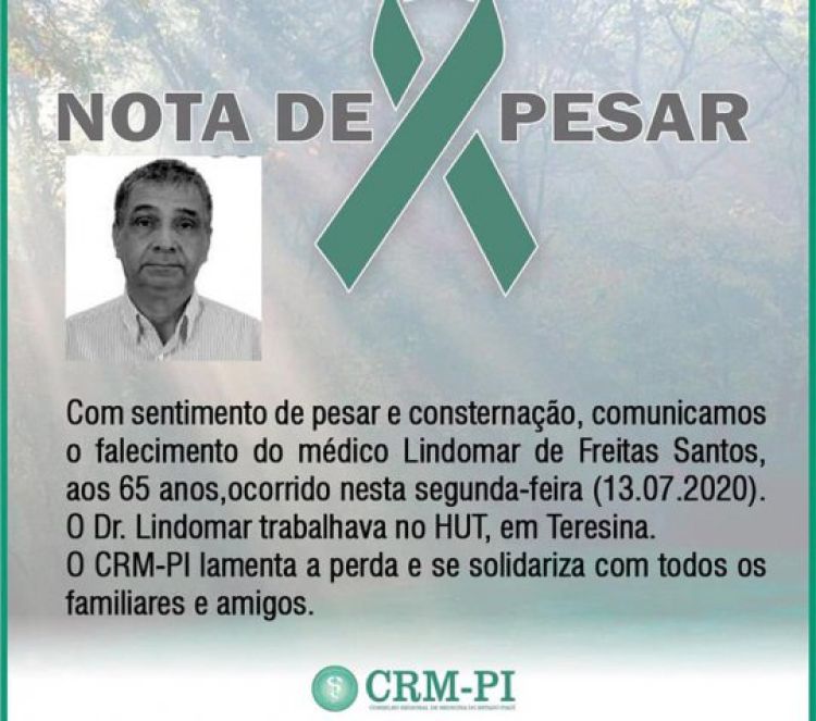 O velório ocorre nesta terça-feira (14) em uma cerimônia restrita no cemitério São José. Lindomar de Freitas foi vereador, deixa quatro filhos e era filho do médico Clidenor de Freitas. "Com profundo pesar, o Hospital de Urgência de Teresina comunica o falecimento do médico Lindomar de Freitas Santos, nesta segunda-feira (13). Dr. Lindomar tinha 65 anos e atuava no Pronto Atendimento da unidade de saúde.