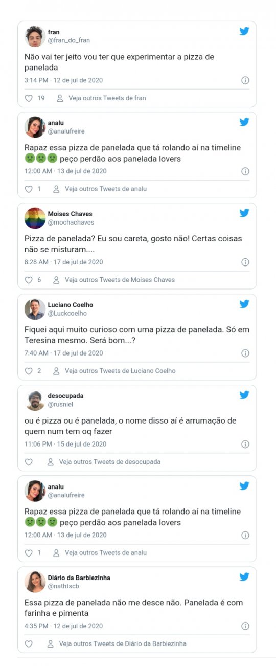 Alguns usuários aprovaram a novidade e outros preferem saborear o prato regional com seus acompanhamentos tradicionals: arroz branco e farinha. O fato é que apesar do bom retorno entre os clientes que saborearam a novidade, ainda não sabe se o novo sabor da pizza ficará fixo no cárdapio da pizzaria.