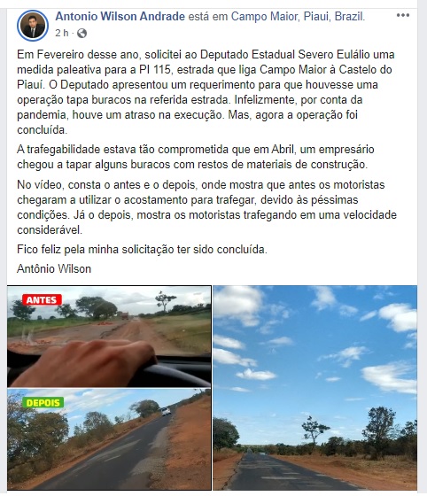 Mas segundo postagem do próprio advogado em seu facebook, autor da solicitação, a obra foi conclusa e agora a trafegabilidade está bem melhor. “Fico feliz pela minha solicitação ter sido concluída”, comemorou.