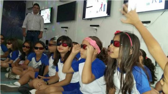 Durante a visita da Eletrobrás os alunos recebem dicas e assistem vídeos em 3D para a conscientização sobre o uso racional da energia elétrica. “É uma experiência fantástica. É interessante este projeto de conscientização de como utilizar a energia de forma adequada. A Eletrobrás utiliza a tecnologia para chamar a atenção dos nossos alunos e informar sobre a importância da eficiência enérgica”, destaca Ribinha.