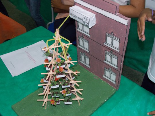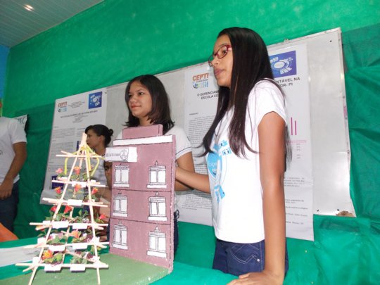 Já na sala temática do curso de Meio Ambiente a proposta dos alunos foi a utilização de métodos desenvolvidos através de pesquisas científicas na busca de reduzir os efeitos das atividades humanas sobre a natureza. A preocupação mundial ganhou a imaginação das alunas Daniele Lorrane e Manuele Ribeiro, que criaram uma forma de reaproveitar a água dos ar-condicionados da própria escola.