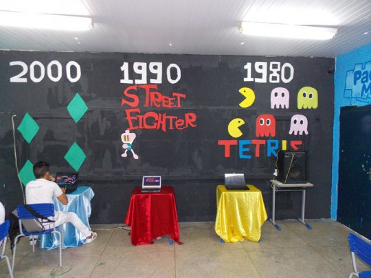 Os alunos do curso Técnico em Informática desenvolveram um espaço que mostrava a evolução dos games. Partindo dos anos 1980, eles apresentaram os jogos populares entre a garotada da época e o surgimento de personagens, como Super Mário, que rechearam a imaginação da juventude.