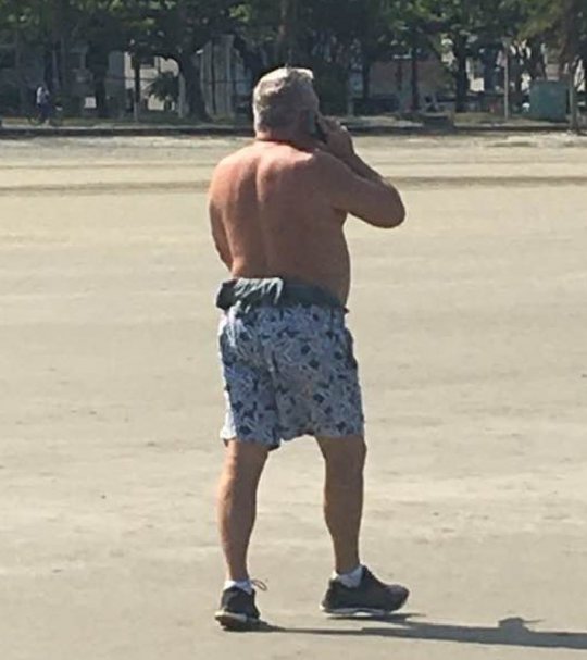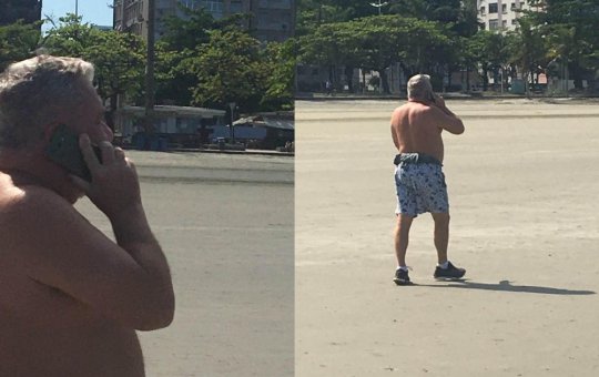 O registro foi feito na manhã desta quarta-feira (5), segundo a moradora, que prefere não se identificar. Ela relata que o desembargador estava caminhando pela faixa de areia, com a máscara no pescoço, enquanto falava ao celular, do Canal 4 até o Canal 5. A cena durou cerca de 20 minutos. "Passou a Rua General Rondon, avistou uma viatura da GCM, deu meia volta e colocou a máscara", descreve.
