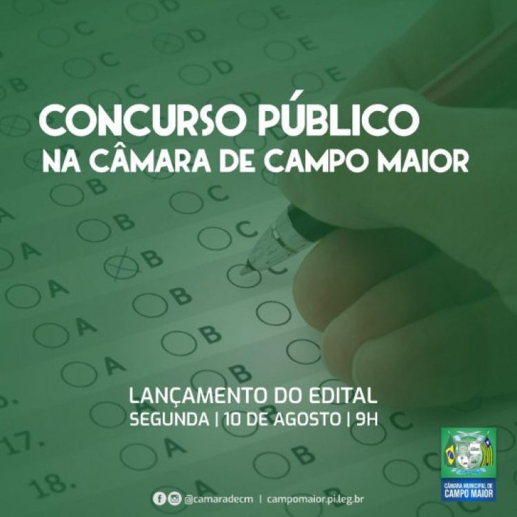 Nesta segunda-feira (10) acontecerá o lançamento do edital do Concurso Público promovido pela Câmara de Campo Maior.