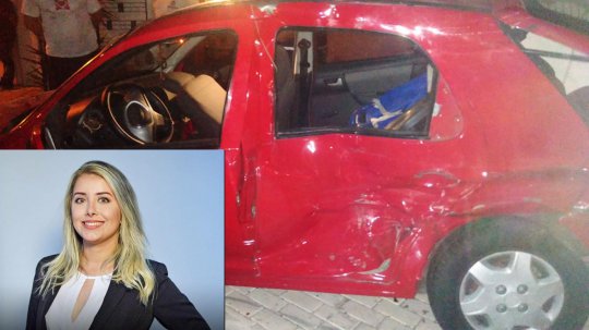 Segundo informações, Roberta colidiu seu veículo em carro de luxo que estava estacionado em frente a um estabelecimento durante tentativa de se livrar de um assalto.