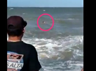 Um surfista entrou na água com sua prancha e corajosamente fez o resgate. Ao conseguir tirar a mulher do mar com vida o público presente aplaudiu o jovem surfista em reconhecimento ao seu ato de coragem.