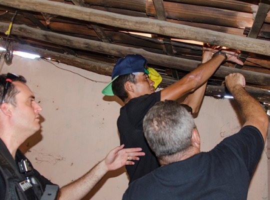 Gerson levou os políciais até o local onde a arma do crime, um canivete, estava escondido no telhado. O criminoso acompanhou todo o trabalho da remoção do corpo da vítima ainda na parte da manhã.