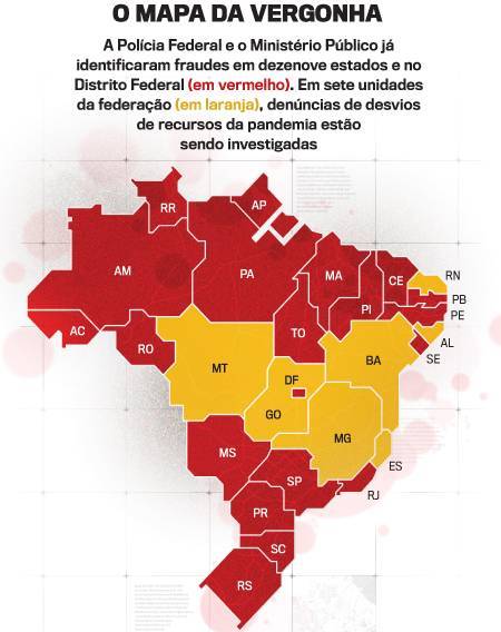 Além de governadores, prefeitos estão na mira das investigações. O avanço dos criminosos sobre o dinheiro destinado à pandemia é tamanho que a PF criou uma central em Brasília apenas para acompanhar o andamento dos inquéritos que apuram o destino de verbas repassadas pelo governo federal aos estados e municípios.