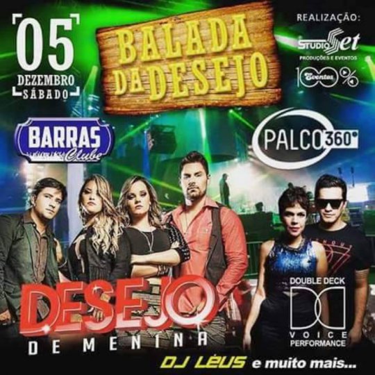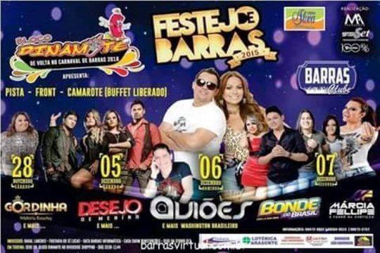 No sábado, dia 05, o Barras Clube recebe a banda Desejo de Menina e Double Deck, domingo, dia 06, Aviões do Forró e Washington Brasileiro e na segunda-feira, dia 07, tem Bonde do Brasil, Xé Pop e Marcia Felipe.