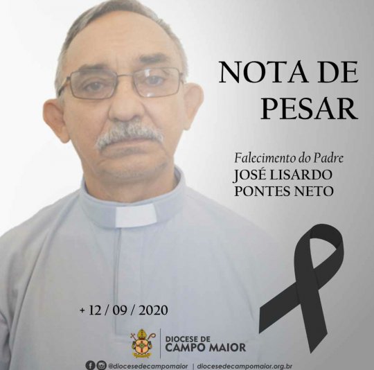 A Diocese de Campo Maior, por meio de seu Bispo Diocesano, Dom Francisco de Assis, e de todo o Clero, manifesta seu pesar pelo falecimento do Pe. José Lisardo Pontes Neto, acontecido por volta das 06h de hoje, 12 de setembro, no Hospital Santa Maria, na cidade de Teresina, onde havia sido internado por complicações de saúde.