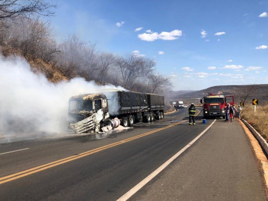 "Ele ligou para o Corpo Bombeiros dizendo que era apenas uma fumaça, mas durante o nosso trajeto até o local, ele ligou novamente informando que a carreta começou a incendiar", informou o tenente Hamylton.