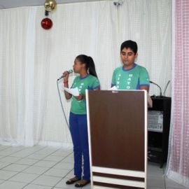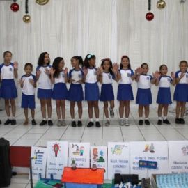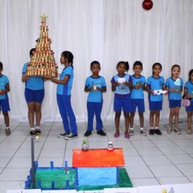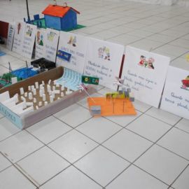 Os alunos cantaram, palestraram, dançaram, mostraram vídeos de ações desenvolvidas durante a semana e até maquetes.