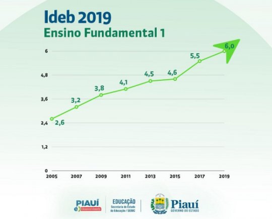 O Ministério da Educação (MEC) divulgou, na manhã desta terça-feira (15), os resultados do Índice de Desenvolvimento da Educação Básica (Ideb). O Piauí registrou crescimento expressivo em todas as etapas de ensino avaliadas em 2019, evidenciando a melhora constante e ininterrupta do desempenho da educação no Estado desde 2005, quando a série que avalia a qualidade da educação teve início.