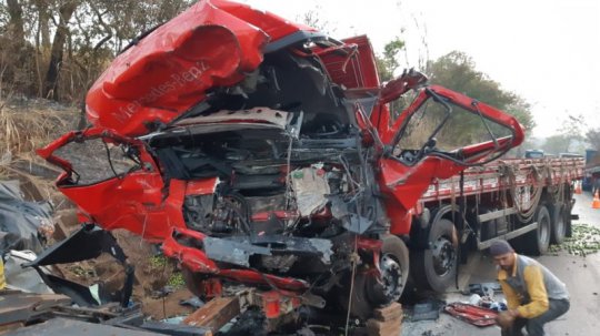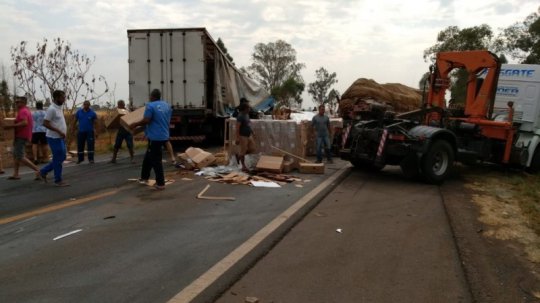 Com o impacto da batida, um dos caminhões rodou nas duas pistas e ocupou os dois sentidos. A pista novamente teve que ser interditada e, até o momento, funciona em sistema pare e siga.