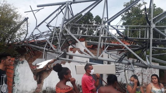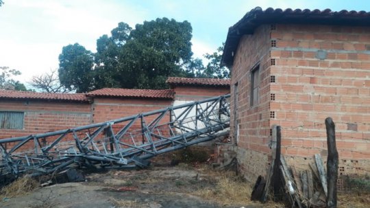 A forte chuva que veio acompanhada de muito vento, derrubou uma torre de telefonia, que acabou caindo em uma área residencial e danificando algumas casas. Postes também foram atingidos, causando a suspensão do fornecimento de energia.