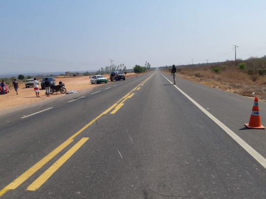 No inicio da manhã desta quinta feira (08) por volta das 06h20 na BR 135 KM 262,0 em Alvorada do Gurguéia/PI, aconteceu um acidente tipo Colisão Transversal seguido de Queda de Ocupante de Veículo envolvendo a motocicleta HONDA/NXR 150 BROS ES conduzida por um homem de 30 anos ainda sem definição do estado físico e uma motocicleta HONDA/CG 125 TITAN conduzida por um homem de 64 anos ileso que não possuía CNH e que transportava como passageira uma mulher de 56 anos que teve óbito no local e que não usava capacete de segurança no momento do acidente.