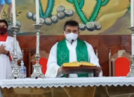 Na manhã deste domingo (18) o padre Paulo Sérgio da paróquia de Nossa Senhora da Conceição da cidade de Pedro II, se irritou durante a celebração da missa desta mnhã após o prefeito e candidato a reeleição, Alvimar Martins, promover uma carreata barulhenta que passou ao lado da igreja durante a celebração.
