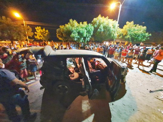 Em seguida iniciou-se a perseguição. Os ocupantes do Corolla efetuaram vários disparos contra o Jeep. Com os tiros, o motorista perdeu o controle do veículo e saiu da rodovia, colidindo contra o muro de uma residências às margens da BR-316.