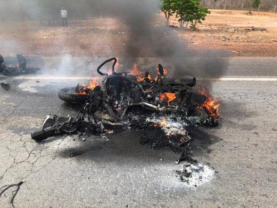 Uma colisão envolvendo um caminhão e uma motocicleta deixou uma pessoa morta na tarde desta terça-feira (3), na BR-222, em São João da Fronteira, município no Norte do Piauí. Por causa da batida, a moto pegou fogo e ficou completamente destruída. Entretanto, ainda não se sabe o que causou o acidente.