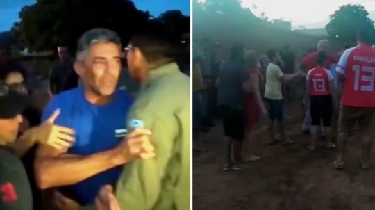 Um homem chega a dizer nas imagens que está todo mundo tranquilo ali e que o vice não deveria aparecer.