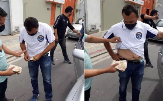O candidato derrotado na tentativa de se reeleger em Caucaia, região metropolitana de Fortaleza-CE, Naumi Amorim (PSD), atribuiu a derrota nas urnas ao trabalho de fiscalização de policiais no dia da eleição, no domingo (29). O irmão do prefeito, Miguel Carolino de Amorim, o subprocurador do município, Antônio Uedson da Silva, o secretário de Patrimônio, Assis Medeiros; o vice-presidente da Autarquia Municipal, Carlinhos Gomes, foram presos com cerca de 1 milhão de reais. Antônio Uedson da Silva é quem aparece com dinheiro escondido dentro das calças.