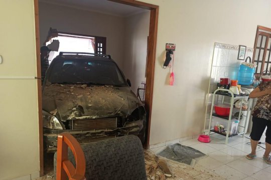 O caso aconteceu no bairro Santa Fé. Segundo a Polícia Militar, o motorista do carro perdeu controle do veículo em uma curva e atingiu o portão, derrubou uma parede e invadiu a sala da casa. A porta da sala de jantar também foi destruída.