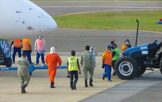 Diante da situação, uma equipe do Samu, do Corpo de Bombeiros e da Vigilância Sanitária foram acionadas. As seis pessoas foram retiradas e levadas para fazerem o teste do coronavírus no hospital. Os demais tripulantes também desceram para que a aeronave fosse desinfectada.