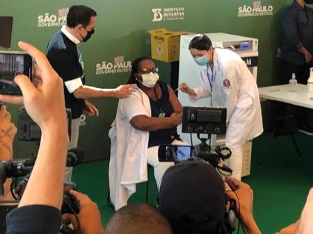 A vacinação começou durante uma coletiva logo após a reunião da Anvisa. A Anvisa já autorizou o uso do imunizante produzido pelo Instituto Butantan em parceria com a farmacêutica Sinovac. O início da vacinação em São Paulo estava marcado para ocorrer em 25 de janeiro, mas jã teve inicio nesse domingo (17).