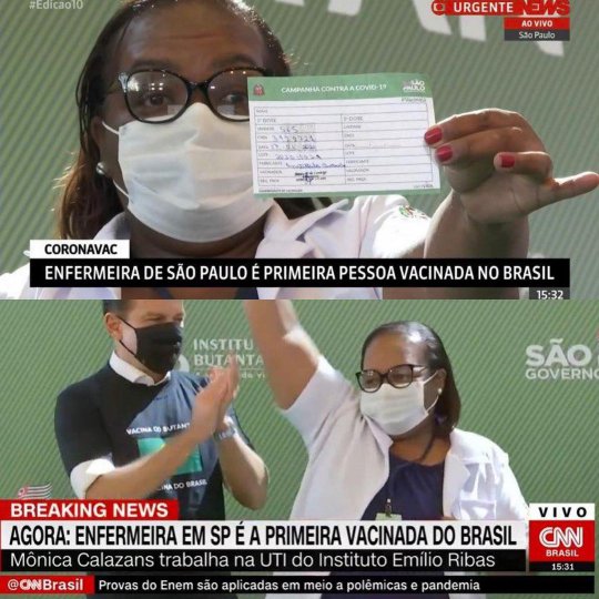 A primeira pessoa escolhida para tomar a Coronavac, vacina desenvolvida pela chinesa Sinovac em parceria, no Brasil, com o Instituto Butantan, é mulher, negra e enfermeira. Ela foi a primeira, fora dos ensaios clínicos, a ser vacinada. Mônica Calazans tem 54 anos e trabalha na UTI do Instituto de Infectologia Emílio Ribas, em São Paulo. A instituição é referência no tratamento de doenças infecciosas. Ela deu plantão no domingo (17) na UTI do hospital.