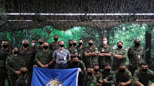 Imagens publicadas no site do Centro de Avaliações do Exército mostram militares com máscaras desenhadas digitalmente. Os registros são de um curso realizado pelo Exército na Marinha do Brasil em novembro de 2020.