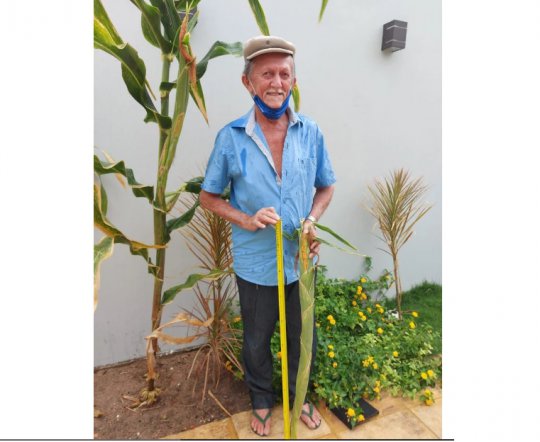 Algo no mínimo inusitado foi observado e registrado em Jaicós. O senhor Aluízio de Carvalho Almeida, de 79 anos, colheu uma espiga de 75 centímetros de um pé de milho plantado por ele no jardim de sua residência.