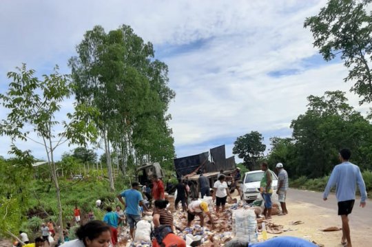 Ainda de acordo com o motorista a carga foi saqueada por populares rapidamente antes mesmo da chegada da Polícia Militar ao local . O acidente ocorreu por volta das 05h e 30min. O motorista identificado como Edinaldo de Oliveira Sena sofreu apenas escoriações.
